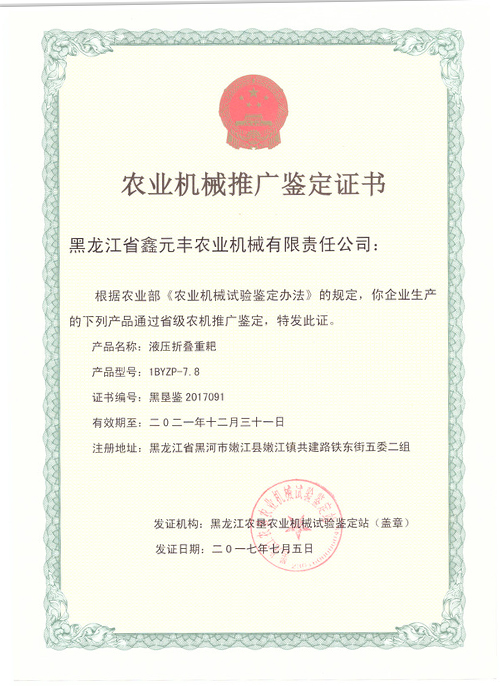 資質(zhì)榮譽(yù) 1BZ-4.0偏置重耙推廣證書 1BYZP-7.8液壓折疊推廣證書 1BYQP-8.5偏置液壓折疊輕耙推廣證書 共9條記錄 當(dāng)前為第2頁(yè)/共9頁(yè)上一頁(yè)12下一頁(yè)